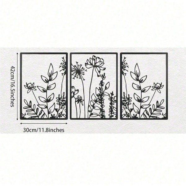 Elevate your home aesthetics with this exquisite 3-piece modern boho floral wall art set, crafted from premium iron for a sleek and durable finish.This nature-inspired iron wall art features easy-to-hang minimalist designs, perfect for adding a touch of elegance to any living room, bedroom, or office space, making it an ideal housewarming gift.For detailed size specifications, please refer to the size chart.