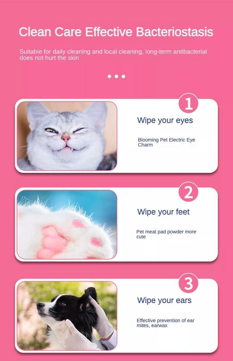 NO MORE DRIED WIPES -Designed with pet owners inmind,our wipes come in a moisture-retaining flow packwith a resealable opening, facilitating easy,one-handedwipe pulls. This feature ensures a hassle-free cleaningroutine for you and your pet.