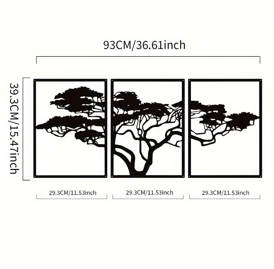 Black Metal Tree of Life Wall Arts (Set of 3): Stunning Boho/Spiritual Decor, Perfect Wall Decor & Gift for Wall Sculptures.Wall Sculptures